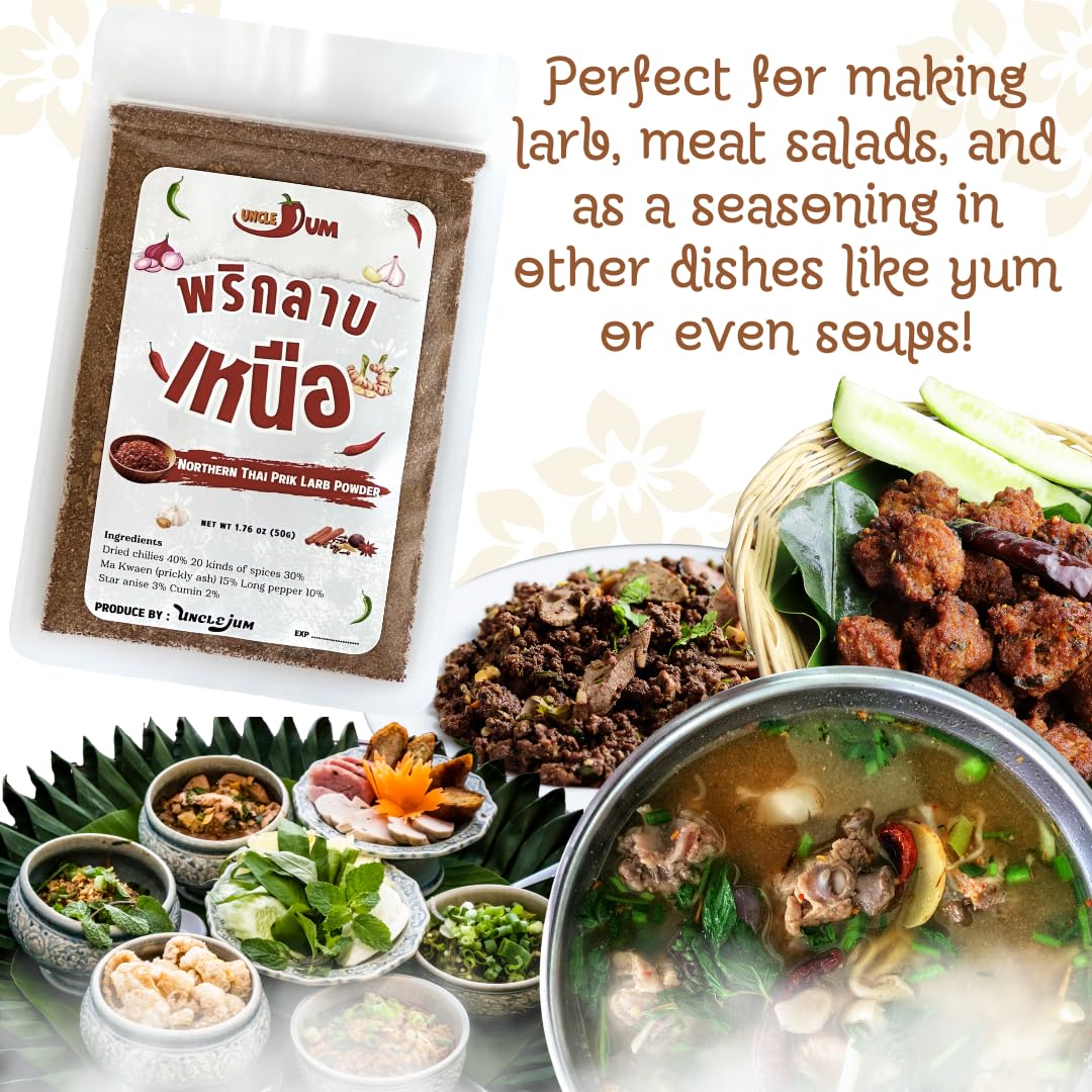 🔥 Bring authentic Northern Thai flavor to your kitchen with UNCLEJUM Prik Larb Powder — a bold and aromatic blend of dried chilies, prickly ash, long pepper, cumin, and over 20 spices. This seasoning captures the depth, fragrance, and heat that make Northern Thai cuisine so unforgettable.