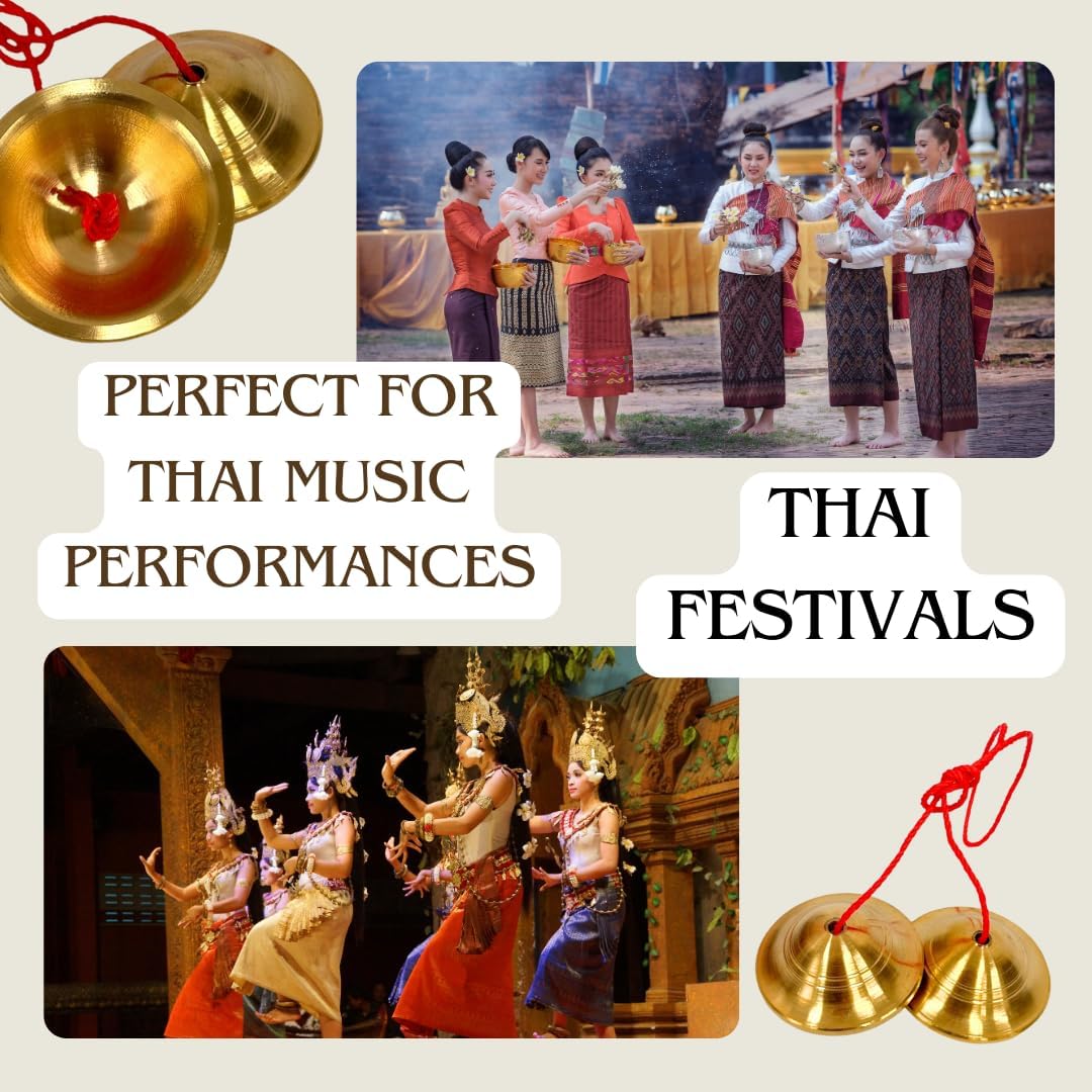 Each pair is designed using traditional methods, producing a bright, resonant tone that captures the essence of Thai music and cultural dance. Whether for temple ceremonies, classical performances, or your personal collection, these cymbals embody both artistry and authenticity.