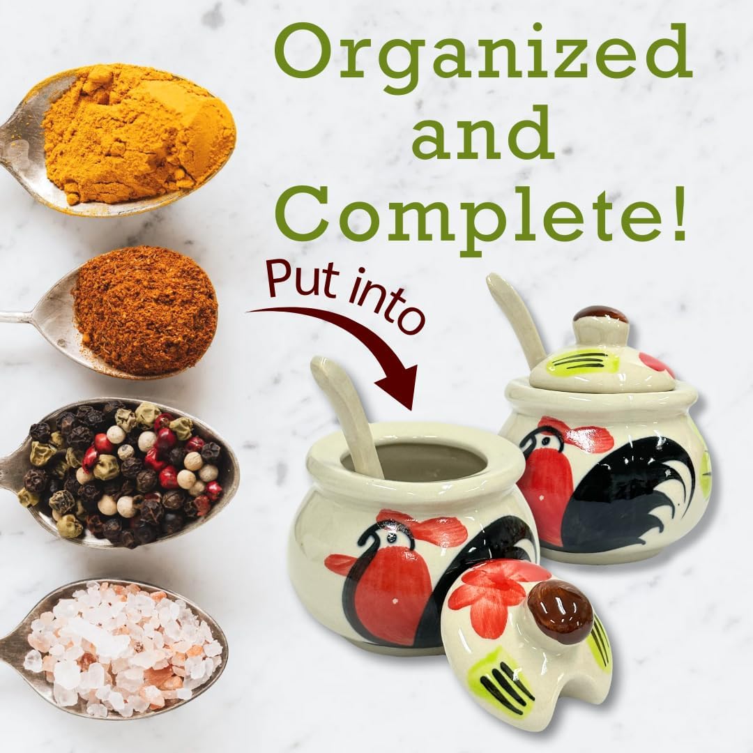 🐔 Bring authentic Thai charm to your kitchen with this Chicken Pattern Ceramic Seasoning Set, inspired by the classic noodle shop condiment racks seen across Thailand.
